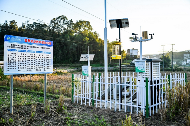 站在丰收的田野上,土壤监测站、微型气象站、虫情测报系统、苗情监测站等众多科技力量犹如“精准哨兵”,时刻关注着薏仁米的长势和环境变化,并将监测到的信息传送至平台,通过种植培养面积监测数据、土壤监测数据、气象报警预警、病虫害监测预警等分析维度,生成最优种植方案,为薏仁米的科学种植与高效管理提供坚实的数据支撑。安装于育秧大棚里的传感器也发挥着相似的作用,空气温湿度、土壤温湿度、土壤EC、光照强度等影响幼苗生长的关键数据,被实时传送到平台之中,工作人员还能通过手机对棚内设备做控制,保证大棚内环境适宜幼苗生长。